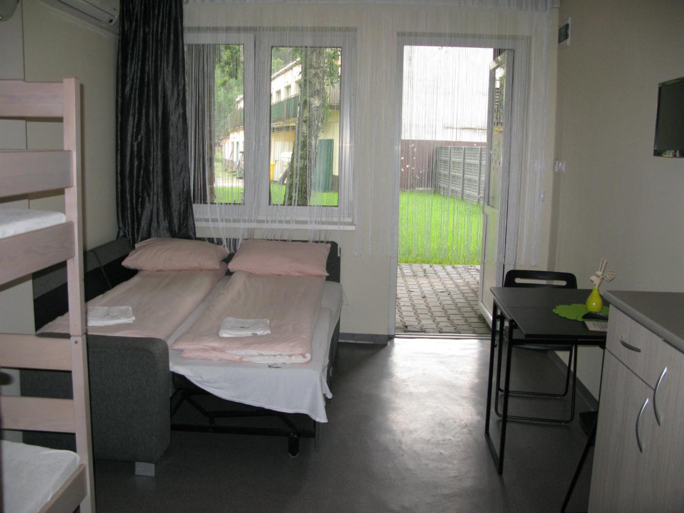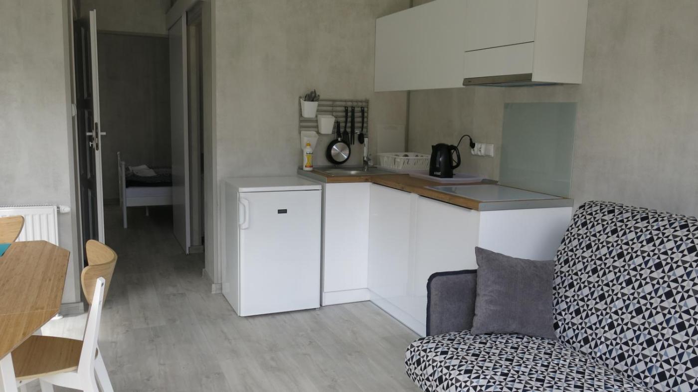 Apartament. Featuring a private entrance, this air-conditioned apartment is comprised of 1 bedroom and 1 bathroom with a walk-in shower. Guests will find a stovetop, a refrigerator, kitchenware and an electric kettle in the kitchen. The apartment also has a barbecue. Boasting a terrace with lake views, this apartment also offers a wardrobe and a flat-screen TV. The unit offers 3 beds. Apartament - 5 osobowy. Powierzchnia pokoju ok.: 25 mkw. ;