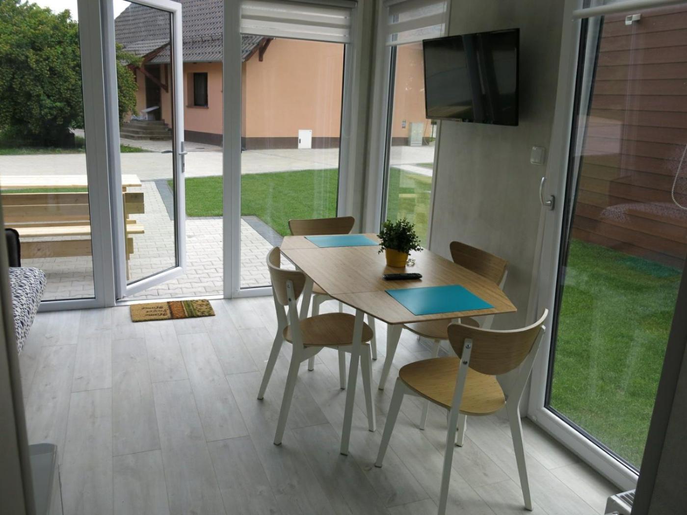 Domek z 2 sypialniami. Guests will find a stovetop, a refrigerator, kitchenware and an electric kettle in the well-fitted kitchenette. The chalet also includes a barbecue. The chalet features air conditioning, a private entrance, a terrace with garden views as well as a private bathroom boasting a walk-in shower. The unit has 3 beds. Domek - 6 osobowy. Powierzchnia pokoju ok.: 27 mkw. ;